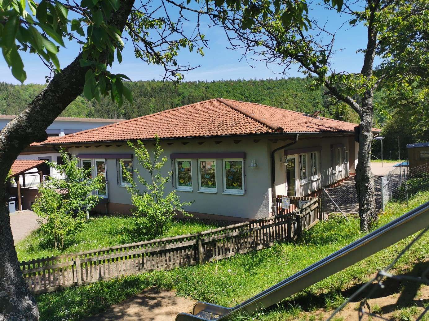 Wir sind eine 1-gruppige Kindertagesstätte, die sich im rechten Bereich des Mehrzweckgebäudes an der Steige 17 befindet.  Die Kita ist umgeben von grün und liegt idyllisch zwischen dem öffentlichen Spielplatz, dem Sportplatz sowie unserem eigenen Außengelände. Dieses teilen wir mit dem Schulkindergarten, der sich im gleichen Gebäude befindet.